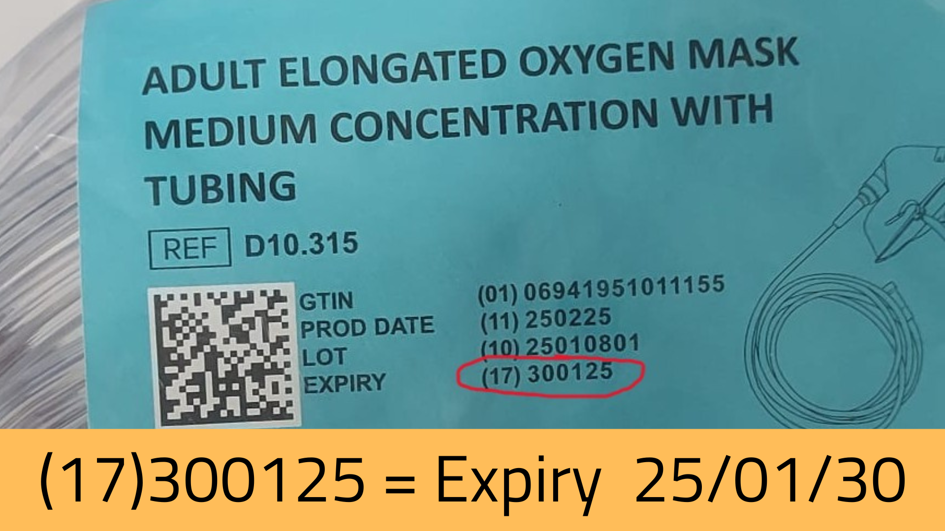 Example: If you see (17)251211, that means the product expires on 11 December 2025 - not 25 December 2011, and definitely not already expired!