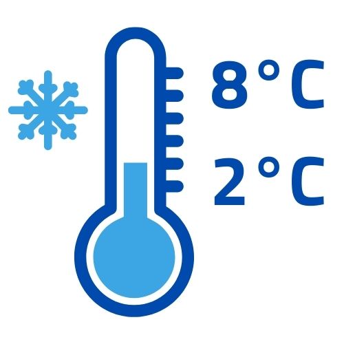Vaccines require a storage temperature range of between 2°C and 8°C.