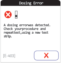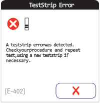 The test strip is damaged or faulty | Power off, remove the strip, and reinsert it. If the error repeats, discard and use a new strip |