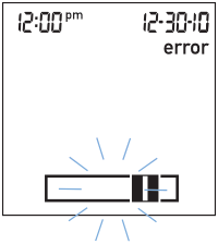 Test Strip Error | Check your procedure and repeat the test using a new strip if needed. Power off, remove the strip, and retest with a fresh sample from a new finger. If it recurs, contact Roche Diagnostics. |