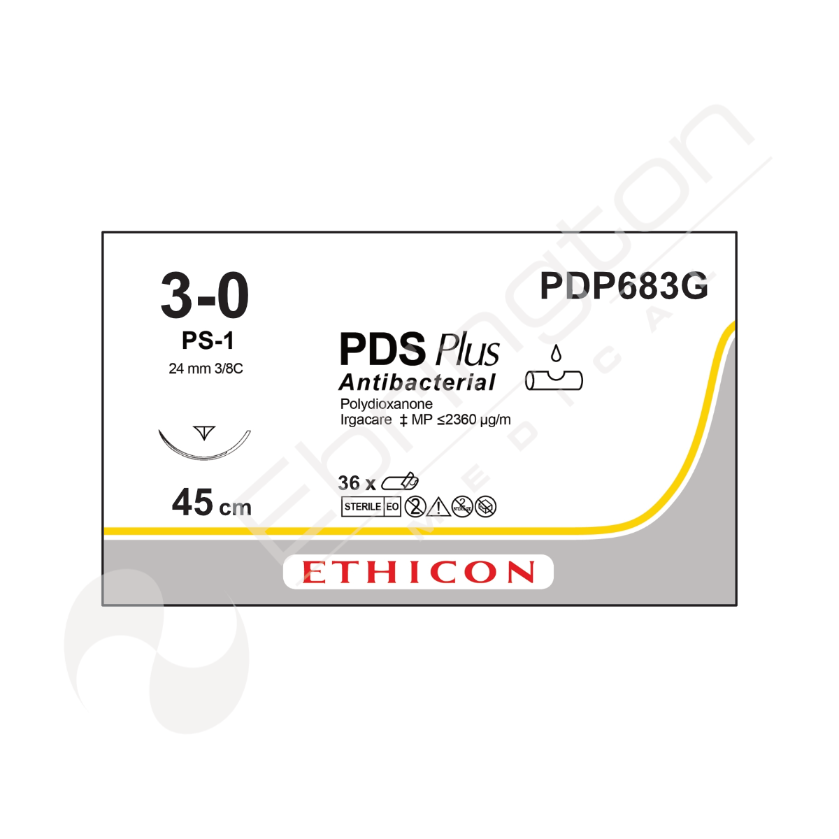 PDS Plus Antibacterial Suture is a sterile synthetic absorbable monofilament suture made from the polyester poly (p-dioxanone.) The empirical molecular formula of the polymer is (C4H6O3)n. Polydioxanone polymer has been found to be nonantigenic, nonpyrogenic and elicits only a slight tissue reaction during absorption.