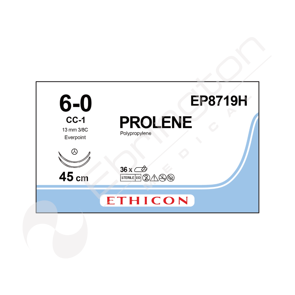 PROLENE Sutures (dyed or undyed) are non-absorbable, sterile surgical suture composed of an isotactic crystalline steroisomer of polypropylene, a synthetic linear polyolefin.  PROLENE Sutures are indicated for use in general soft tissue approximating and/or ligation, including use in cardiovascular, ophthalmic and neurosurgical procedures..