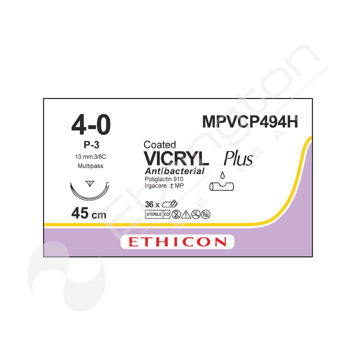 Coated VICRYL Plus Antibacterial suture is a synthetic absorbable sterile surgical suture composed of a copolymer made from 90 % glycolide and 10 % L-lactide.