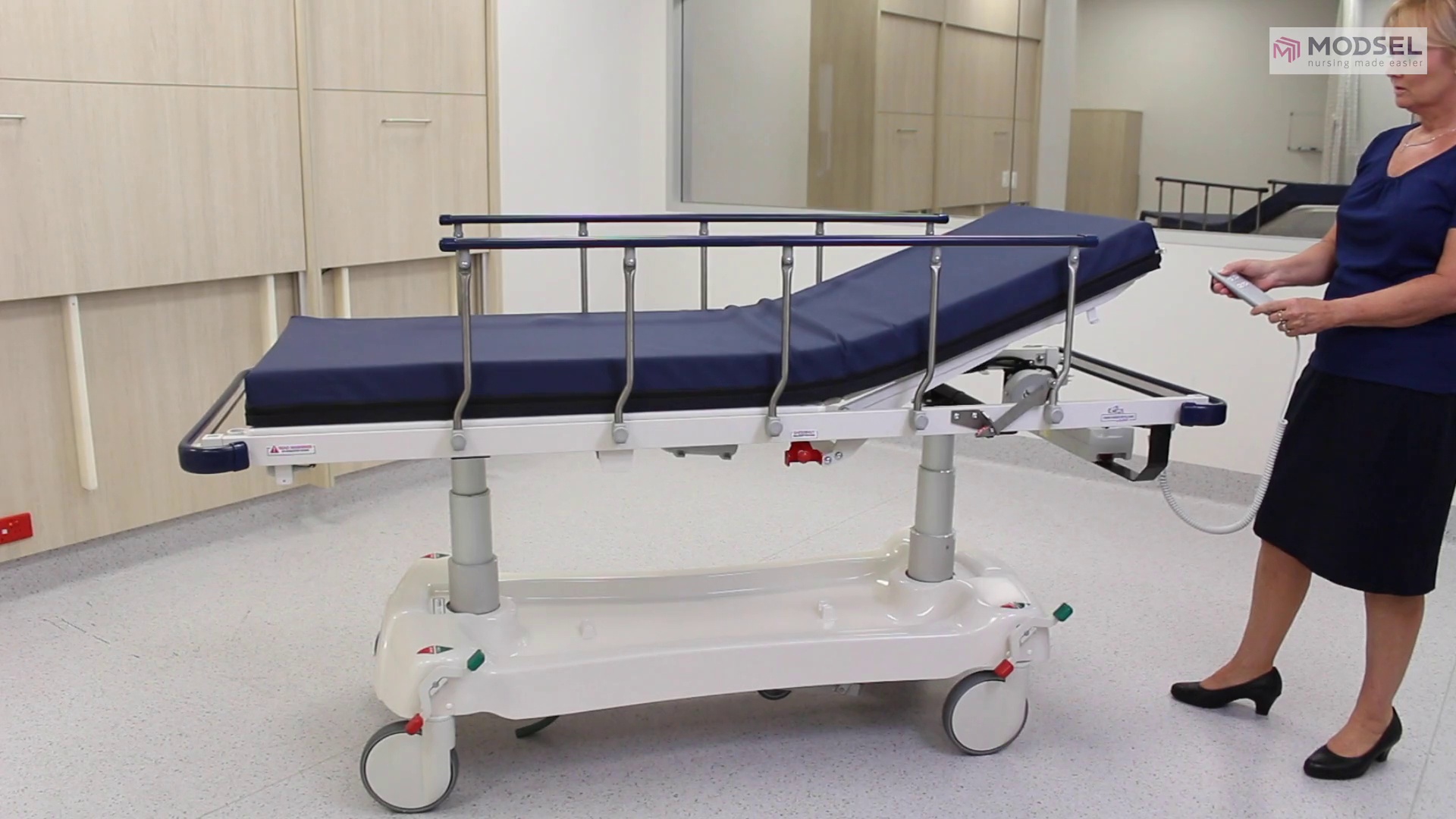 • Hydraulic Package Includes: 100mm premia mattress, folding IV, vertical oxy, dropdown footboard & drop down push handles
