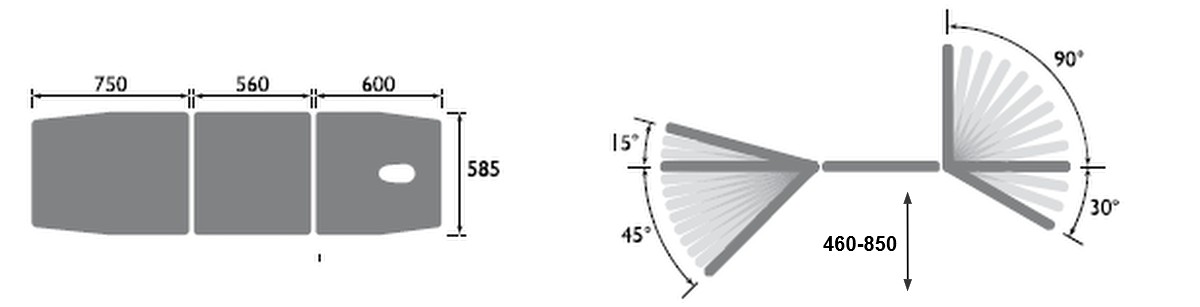 - Foot Rest Angle Adjustment: -45°/+15°
