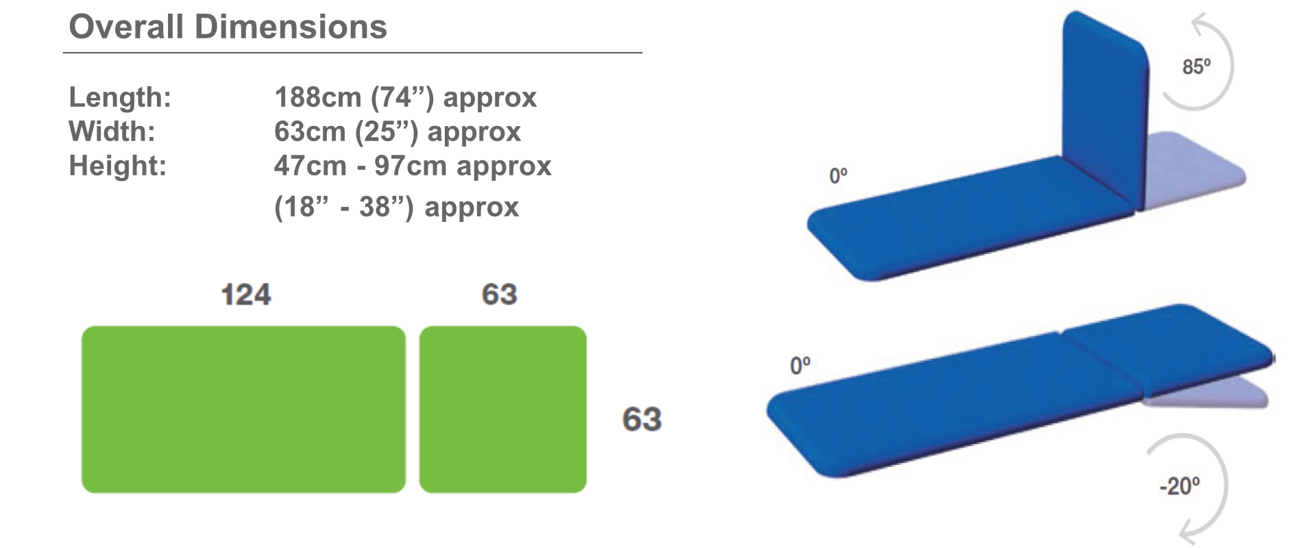 • Adjustable angle backrest for supporting the patient in a sitting position