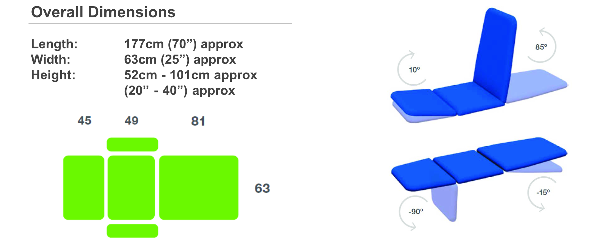 • Adjustable angle back rest for supporting the patient in a sitting position