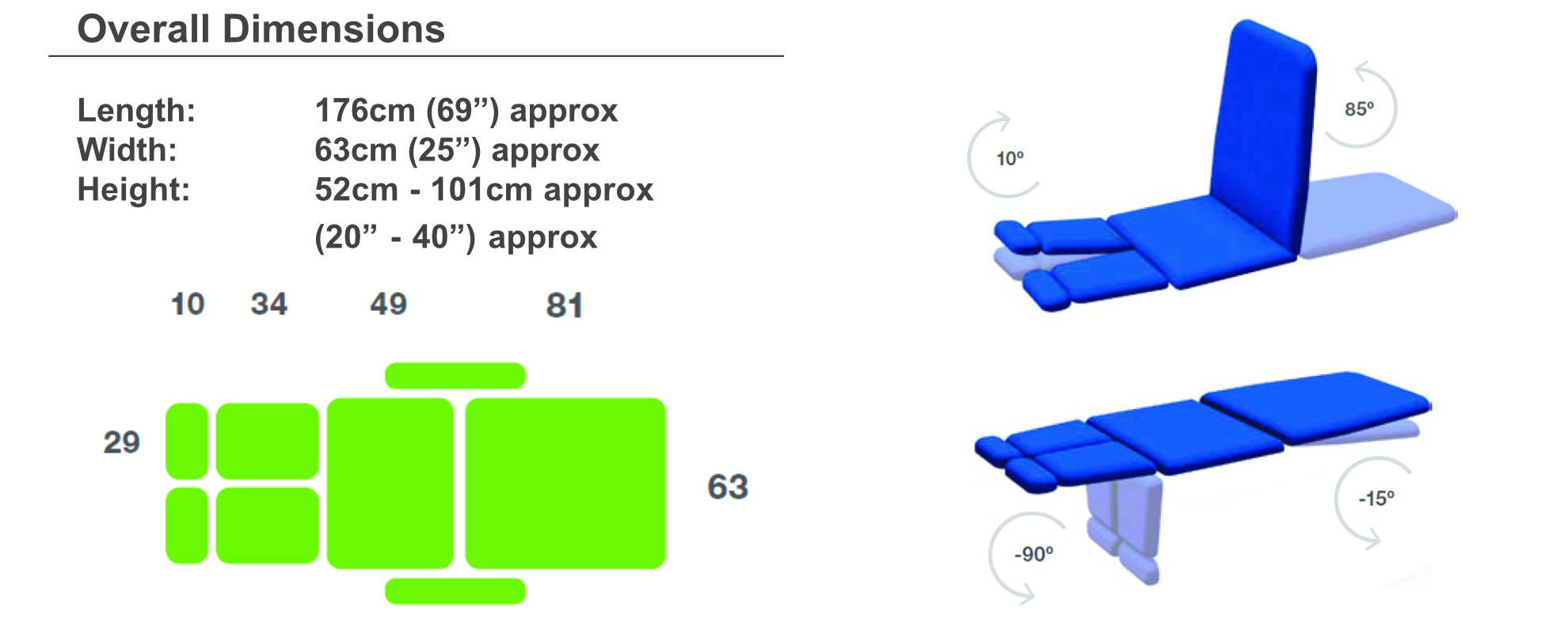 • Foot Rest Angle Adjustment: -90°/+10°