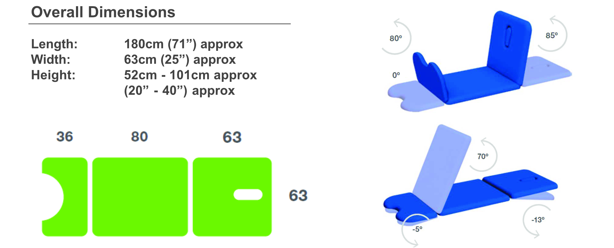 • Adjustable angle backrest for supporting the patient in a sitting position