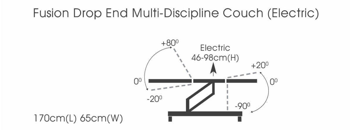 The Sunflower Fusion Drop End Multi-Discipline Couch with Electrically Powered Height Adjustment, Back and Foot Sections, offers not only comfort for the patient and ease of access for the clinician, but also amazing flexibility whereby it can be configured into a wide range of specialist treatment uses including physio, gynae, phlebotomy or treatment chair via the addition of relevant accessories.